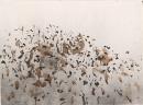 quill and brush and coloured inks on sprayed paint ground