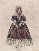blue colours bonnets (hats) brown colours conceptual drawings costume design dresses (garments) women (female humans)