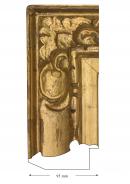 The frame is a mixture of cast and carved ornament worked on a wooden base. The corners of the basic construction are splined mitres. The working edge tapers at the back to produce a thin aspect when on the wall. The corner elements appear to be cast, probably in composition, set into a hollow in the timber. The leading edge is carved into the wood. The surface is false gold throughout, with variations in tone which might well be the result of variations in the alloy of the leaves themselves. There is a deliberate patination of the surface with dark paint worked into the hollows.