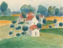 watercolour over pencil, pen and blue ink