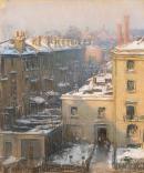 inscribed in black pencil on reverse u.c.: 18 (18 encircled) / London / Houses in the snow / 20 Guineas