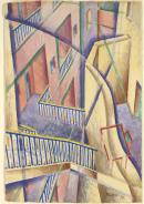 inscribed in blue ballpoint pen u.l.: on reverse H.F. WEAVER-HAWKINS / STAIRCASE 1957