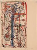 pen and ink, watercolour and gouache