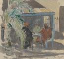 cafés (restaurants) hats men (male humans) Morocco (nation) seated figures street scenes Tangier (inhabited place) turbans