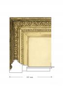 The outer frame is profiled from a single piece of timber with composition ornaments to the back edge, torus and inner edge. There is an inner slip of timber and then a wide flat of gilded pulp-board. The flat is supported from behind by a wide timber section. The ornament on the torus is finely moulded and appears to sit as a pierced pattern over a gessoed half-round timber section. The cavetto either side is burnished on a black bole. The wooden slip is burnished on a red bole. The frame is water gilded.