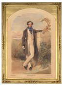 Gilded frame incorporating an inner frame with a curved top. The frame is decorated with a sanded frieze and compo ornament at the corners and centres composed of floral motifs and c-curves. The frame retains its original gilding including oil gilding and water gilding (matte and burnished).