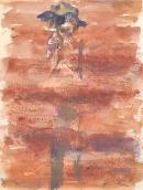 pen and ink, watercolour and coloured pastel