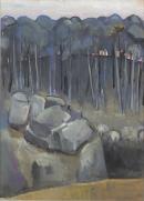 inscribed in grey paint over inscription in green paint (in image) l.r.: Fred Williams