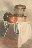pottery (visual works) tables (support furniture) wickerwork (visual works)