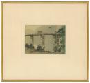 This simple framing is completely intact, including the window matt, which is offset from the bottom, giving a broader margin than the top. The two sides are slightly smaller again. It represents an early twentieth-century approach to the framing of watercolours, however the origins of the pale window mount and the thin frame go back to the nineteenth century.2 The label has the character of a hand-printed wood or lino cut.3