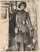 label formerly on old mount, printed in ink u.l.: A.S. Hartrick, A. R. W. S. / IN THE TOWNS – A 'BUS CONDUCTRESS. / A / 57