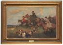 dog (species) equestrians Exmoor (upland) horse (species) hunting hunting clothing men (male humans) women (female humans)