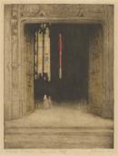 etching, with watercolour highlights