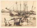 inscribed in pencil l.l.: Sunlight and Ships No 7/50