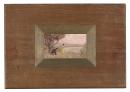 It is one of a small group of original ‘9x5’ frames in the collection. These are frames that are believed to have been made by the artists, more or less in situ, for an exhibition in 1889 (The 9 by 5 Impression Exhibition) of small scale paintings often painted on wooden cigar box lids that were about 5 inches by 9 inches in format.