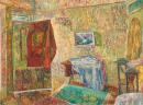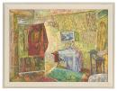inscribed in pen and blue ink on paper label on reverse u.l.: Interior with Blue Painting. / Grace Cossington Smith / 70 Gns
