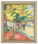 Grace Cossington Smiths’ painting, Road with two horses (c.1933), came into the collection in 1971 housed in a simple, two step bevel moulding frame painted a red ochre colour.