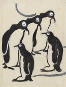 gouache over pencil on pale green paper