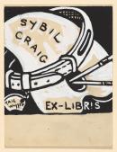 Image of palette and dog collar with the words Sybil Craig, Tail Wagger and Ex-Libris painted in the image.