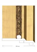 The original frame is built from a simple assemblage of flat planks of softwood timber with a cast plaster ornament of imbricated oak leaves on the inner edge. The plaster sections have been attached with glue and nails. The cross-banding is formed as part of the cast, suggesting that the torus has been cast from an existing finished frame. The rebate is formed by the addition of battens, butt-joined on the reverse. The wide planks, which make up the flat of the frame, are mitred at the corners. The corners were reinforced with triangles of timber. Battens formed the rebate to the slip and ran across the mitre in the vertical direction. The outer edge of the mitre was secured with nails. The flat sections are surfaced with matte water gilding on a white base, with a very thin ochre bole. The imbricated oak torus is a warmer colour and is oil gilded with false gold. The margin on which the torus sits carries the remnant of a sanded surface, formerly painted with bronze paint. The torus is a later addition. The channels either side of the torus have slightly chamfered edges and continue the oil gilding from the torus.1