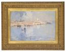 boats canals (waterways) domes (architectural elements) Italy (nation) sunrise towers (single built works) Venice (inhabited place) waterfronts
