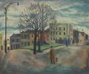 bluish grey boys dwellings homes men (male humans) streets towns trees