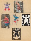 coloured chalk, gouache and pencil