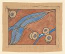 linocut and watercolour wash on brown paper