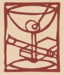 linocut printed in red ink on cream paper