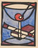 linocut and watercolour on cream paper