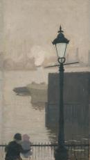 boats children (people by age group) lamp-posts London (inhabited place) mothers riverfronts rivers Thames (river)