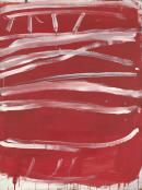 Tony Tuckson was the deputy director of the Art Gallery of New South Wales (AGNSW) from 1957 until his death in 1973. Born in Egypt to English parents, he first experienced First Nations Australian art in 1949, and this ignited a lifelong passion. In the late 1950s, he acquired Pukumani burial-ceremony poles for AGNSW, and in 1960 became the first institutional curator to display Aboriginal and Melanesian art as contemporary art. Although Tuckson was a prolific artist, he kept his artistic practice private for most of his life. White lines (horizontal) on red was included in Tuckson’s second solo exhibition, held at Frank Watters Gallery, Sydney, in 1973.