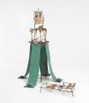 twigs, canvas, rocks, string, papier mâché, feathers, bones