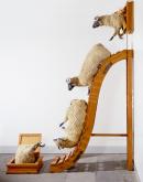 sheepskins, aluminium, Douglas-fir (Pseudotsuga sp.), leather, steel