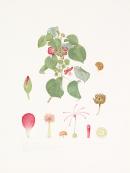 inscribed in pencil l.l.: Abutilon menzie sii / Habit XI / Bud, petal staminal column, gynoccium + fruit capsule x 3 / Antler x 24 Apex of style, + stigma, Magnified. / T.S. ovary x 18 / Seed x 12