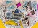 coloured fibre-tipped pens, coloured ballpoint pens, gelatin silver and polaroid photographs, masking tape, pencil, wash, polyvinyl acetate, pastel, gouache and enamel paint