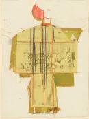gouache, coloured crayons, collage of cut yellow paper and pencil