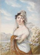 blouses (main garments) cityscapes (representations) miniatures (paintings) miniaturists portrait heads single-sitter portraits veils (headcloths) women (female humans)