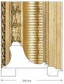 The frame is made from composition ornament on a wooden chassis. The chassis has mitred corners, which are braced on the reverse. The flutes of the inner scotia are carved in the wood, displaying a slight, but interesting, variation in width and depth. The frame carries a mixture of gilding, burnished on a red bole on the fillet, water gilding on the slip, matte gilding on grey brown over red bole on the leading edge. The leading edge carries a torus of imbricated laurel and berry, banded at the corners and centres. The inner scotia corners are covered by acanthus leaves, the back edge carries a ribbon and stick ornament.