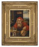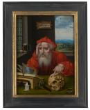 Although this work is unsigned and undated, its composition and meticulous painting style suggest that it is close to works by the Flemish artist Joos van Cleve, who died in 1543. Jerome, a fourth-century theologian and moral philosopher, was a popular subject in Western painting in medieval and Renaissance times. Credited as the translator of the traditional Latin Bible, Jerome was seen as the archetypal scholar/philosopher. He was also admired as a holy man who had rejected worldly vanities.