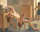 Balthus tirelessly cultivated a mysterious aura in his life and art. He developed an individualistic vision, without formal training, by copying the works of French Baroque painter Nicolas Poussin and studying Renaissance art. Balthus’s painted world of stage-like interiors is like our dreams: realms in which we know everything has meaning but where meaning eludes us. Nude with cat is one of a group of paintings by Balthus that offer languorous depictions of young girls. The lubricious quality of these scenes is heightened by the presence of a curtain or sheet, in deference to historical paintings of female bodies being revealed as though in a private viewing.