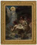 The finalists for the Prix de Rome, France’s annual competition for a travelling scholarship for art students, were assigned a set topic and were required to complete their paintings within ninety days, working in strict isolation and under guard. In 1875 the Académie des Beaux-Arts selected the Biblical subject of the Annunciation to the Shepherds. Bastien-Lepage approached the theme with the uncompromising naturalism that was to become a hallmark of his style. He was favoured to be the winner, however the heightened realism of this painting may have swayed the competition’s more conservative judges against his entry and he controversially failed to win the scholarship.