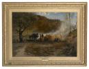 Richard Beavis painted of a wide range of subjects, including landscape, Orientalist images, military, rustic and animal scenes and exhibited often at the Royal Society of British Artists. This depiction of the production of charcoal was owned by the NGV’s greatest benefactor, Alfred Felton. This is fitting as amongst Alfred Felton’s many enterprises was the production of charcoal. This picture had pride of place in his collection, exhibited on a large easel, which jutted out into the central floor space of his apartment at the Esplanade Hotel, St Kilda.