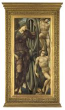 In 1870 Burne-Jones had planned a suite of ten paintings devoted to the history of ancient Troy. Included were a number of small panels addressing related themes associated with the theme of love conquering all. While The Wheel of Fortune was a subsidiary element within the grand (and unfinished) Troy project, the painting stands well alone, with the powerful goddess Fortuna, turning the figures of a slave, king and poet upon her implacable wheel of destiny. Burne-Jones executed no fewer than six versions of The Wheel of Fortune, in various media. He began this painting in 1871 and did not complete it until 1885.