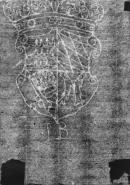 Originally, the Arms of Württemberg depicts three deer antlers alone and in the late fifteenth century the Arms were quartered. The Arms of Württemberg watermark shows these quarters within a shield: the original three deer antlers in the upper left quarter; a diamond pattern, representing the County of Teck in the upper right; fish (or barbs) representing the county of Mömpelgard (today known as Montbéliard) in the lower right; and an eagle with a standard, and a imperial flag, representing the city Ludwigsburg in the lower left quarter.