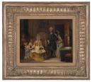 Oliver Goldsmith’s 1766 novel The Vicar of Wakefield, about a virtuous Yorkshire cleric fallen upon hard times, became one of the most popular works of sentimental fiction in the Victorian era and helped launch the career of the young Yorkshire artist William Frith. Frith’s flirtatious scene Measuring heights was exhibited at the Royal Academy in 1842 and he later referred to it as ‘my first success’. Frith was made an Associate of the Royal Academy only two years later, and a full Academician in 1852. He made other paintings based on passages from Goldsmith’s novel of which this charming small study is most likely related.