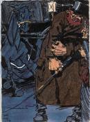 caricatures carriage lamps horse (species) horse-drawn vehicles men (male humans)