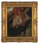 Through his teaching and artistic practice, Benjamin Robert Haydon advocated that the standard of British art, therefore the spirit of the nation, could be elevated by artists portraying morally uplifting subjects based on Classical literature. The story of Marcus Curtius, with its theme of nobility and sacrifice, suited Haydon’s ideal of appropriate subject matter for “high art”. In 1842, he began a huge painting of Marcus Curtius, over three meters in height, which he exhibited at the British Institution in 1843. The painting met with some critical success, and Haydon went on to make numerous small copies, which he sold to friends and patrons. This is one such version, which was bought by Haydon’s long time patron and supporter Richard Twentyman, who, shortly after purchasing it, emigrated to Australia.