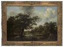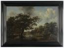 Around 1655, Meindert Hobbema became one of the few apprentices to enter the studio of the landscape artist Jacob van Ruisdael. Ruisdael had a profound effect on Hobbema’s work, with the two artists often portraying the same scenes. Hobbema specialised in producing heavily wooded landscapes, which were romantic in character like those of his master, although Hobbema did not imbue his works with the same degree of drama or eerie atmosphere as did Ruisdael.