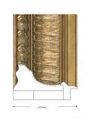 The frame is made of two wooden profiles. The inner amounts to a slip but is overlapped on the front of the outer frame rather than sitting into a rebate. The working edge is established by the addition of a strip of timber. The frame carries a mixture of oil and water gilding finished with size to matte the surface, the raised half-round is lightly burnished. The outer section carries two composition friezes with gilding varying between yellow and lemon gold. The corners are mitres joined with tie bolts to facilitate assembly and dismantling for travel. 1